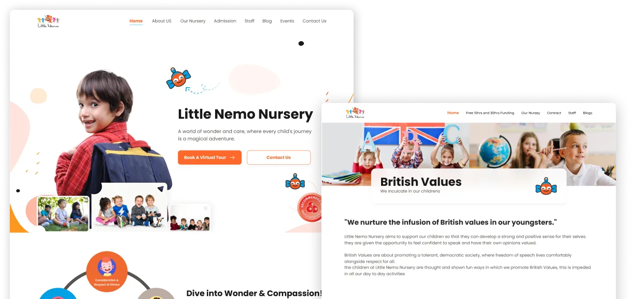 The current Little Nemo Nursery website suffers from poor design and usability, creating barriers in effectively engaging with parents and potential clients. The existing interface lacks visual appeal and intuitive navigation, hindering seamless communication and information access.